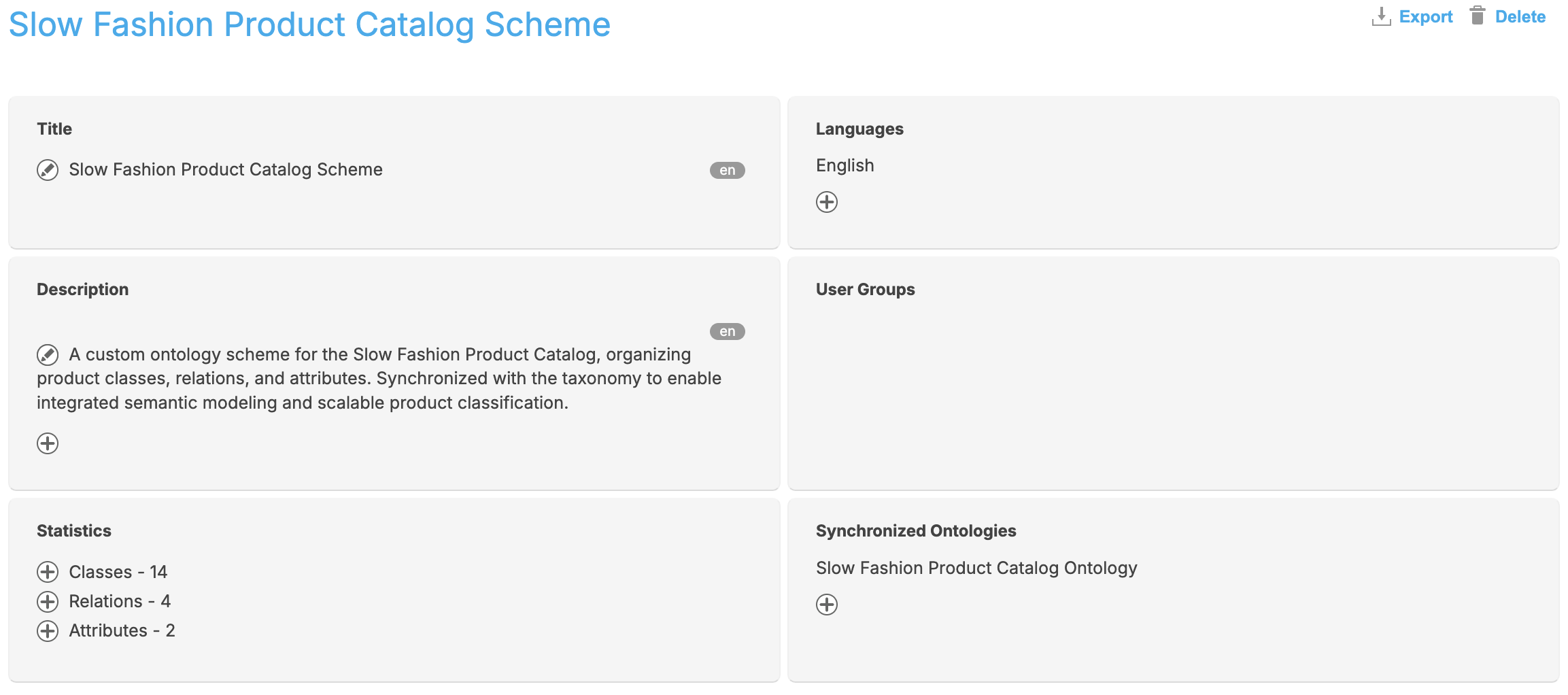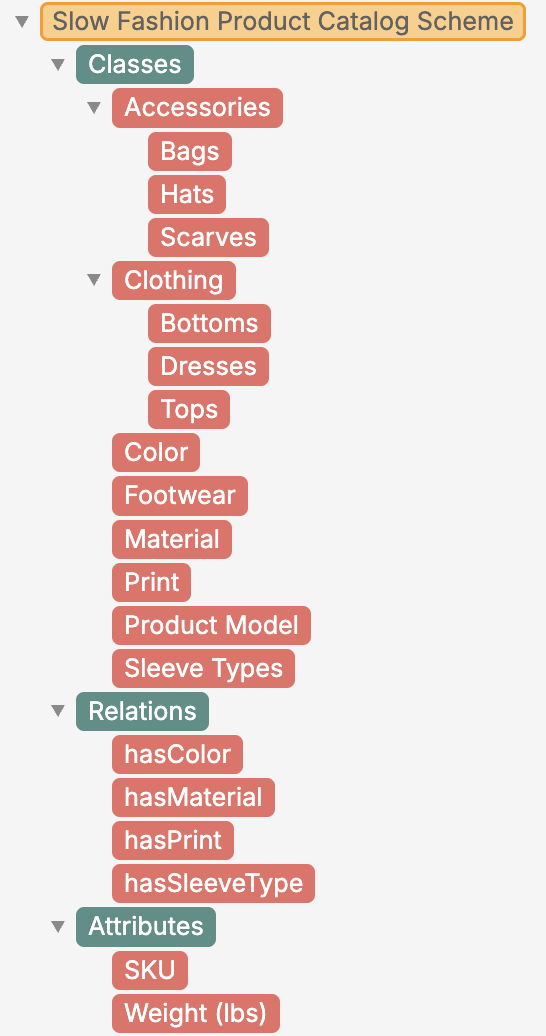 The Slow Fashion Product Catalog is an e-commerce taxonomy and ontology case study built using PoolParty Semantic Suite. It simulates a structured taxonomy for a hypothetical women's sustainable apparel brand, designed to support accurate product classification, metadata tagging, and faceted search functionality.