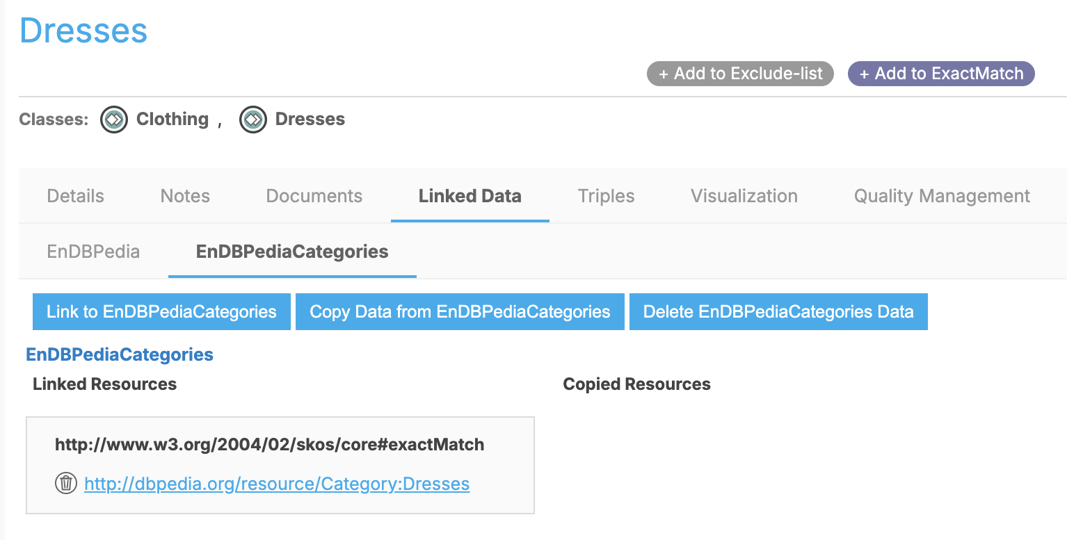 “Dresses” concept enriched with external reference via skos:exactMatch to DBpedia.